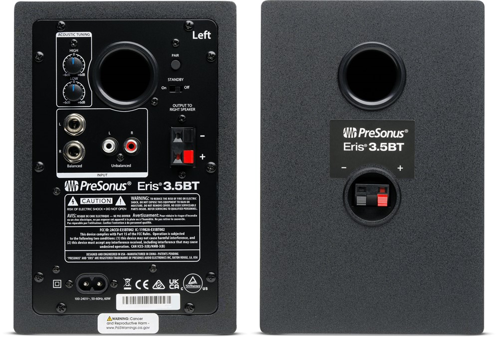 With 25 watts per side of onboard power, the Eris 3.5BT reference monitors pack a serious punch, while still delivering clear, accurate audio. The weave and nature of the Eris 3.5BT's 3.5-inch woofer result in tight bass that you can feel, as well as cleaner overall sound. The one-inch silk-dome tweeter produces refined high-frequencies and is designed to radiate sound with a wide pattern, creating a large optimal listening area. Improved speaker voicing over previous designs delivers richer lows and a smoother crossover transition for articulate, accurate transient reproduction through the frequency range and a less-fatiguing listening experience.