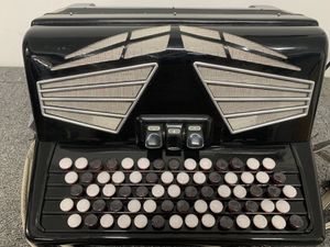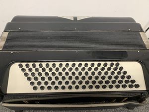 Brukt Brilliante 70/96 knappetrekkspill med norsk system og2-korig med 3 register selges. Spillet veier 7,1 kilo.