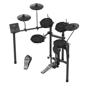 The DM-110 is a high-performance, entry-level digital drum kit designed for musicians seeking a compact, durable, and highly responsive setup. Part of the NUX series, it features a sleek metal frame with space-efficient drum pads and cymbals, providing a natural and comfortable playing experience. With an upgraded design based on the DM-1X, the DM-110 aligns more closely with traditional acoustic drum layouts, offering better ergonomics. The metal-welded central frame ensures long-term durability, while adjustable drum pad rods allow for flexible height and rotation, adapting to different playing styles. The sound module is designed for simplicity and efficiency, featuring only three control buttons for quick adjustments to the metronome, drum kit selection, and volume control. Additionally, it includes a built-in smartphone holder, making it easy to access the module’s features through the Drum Touch app. Drum Touch App: Full Digital Control The Drum Touch app provides full digital control over the DM-110, offering an intuitive way to customize and adjust drum kit settings. By connecting the module to the app, users can seamlessly select from 12 preset drum kits or create and store up to three custom kits. The app also features an advanced metronome, allowing precise adjustments to speed, volume, time signature, rhythm patterns, and sound variations, ensuring a fully personalized playing experience.Enhanced Sound Quality & Playability The DM-110 features a new collection of high-quality drum samples across multiple genres, including rock, blues, jazz, metal, and traditional Chinese styles. These samples are meticulously recorded and optimized to provide a rich, dynamic sound. Additionally, the 6-inch independent rubber kick drum is double-pedal compatible, offering a realistic pedal response for an authentic drumming experience. - Display: 3 LED digital display - Drum kit: 12 factory drum kits, 3 custom drum kits - Effect: EQ, Reverb - Trigger: Tom x 3 (Single-zone), Snare x 1 (Dual-zone), Hi-hat x 1 (Dual-zone with chok), Crash x 1 (Dual-zone with chok), Ride x 1 (Dual-zone with chok), Kick x1 - Interface: Power Input, Output, AUX IN, USB, Trigger Input, Headphone - Output Power: DC 9V center negative, 200mA